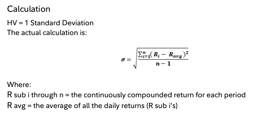 I found Fidelity’s definition of HV: https://www.fidelity.com/learning-center/trading-investing/technical-analysis/technical-indicator-guide/historical-volatility