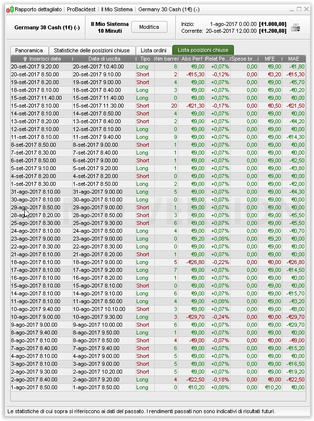 Gent.mo Roberto oggi, avendo montato il sistema in reale, ho notato che c’è qualcosa che sembrerebbe non andare. Infatti la prima operazione è stata effettuata alle 8:50 senza rispettare il setup ma poi nel reverse il sistema mi ha fatto aprire consecutivamente diverse operazioni long una dietro l’altra. Ti allego i file con le operazioni.