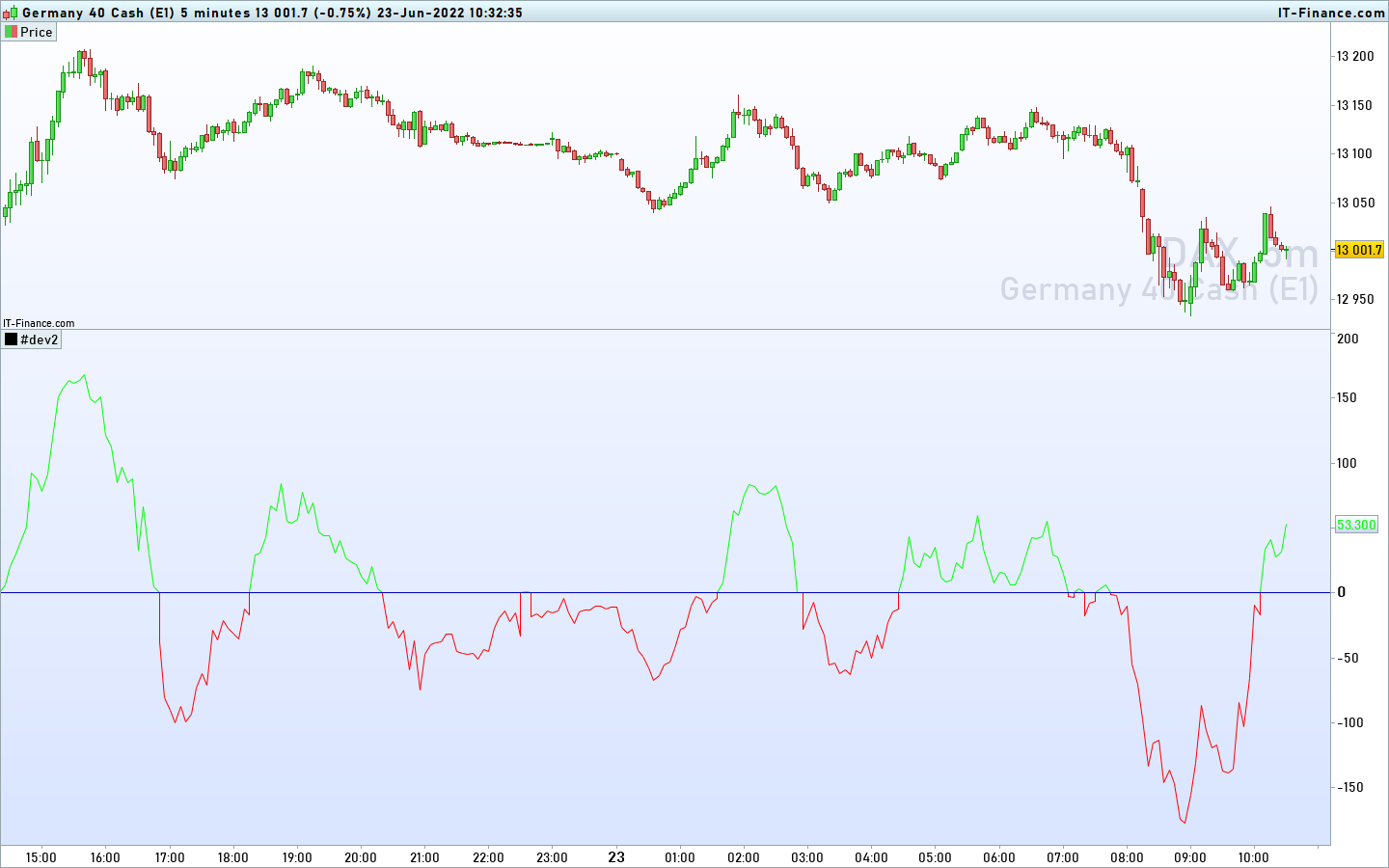 Suppose you calculate the momentum over a longer period of time and for example 100 comes out and your central zone is 25, for example, then you can have a horizontal line drawn on: DrawHLine(100/25) Coloured (0,0,255)