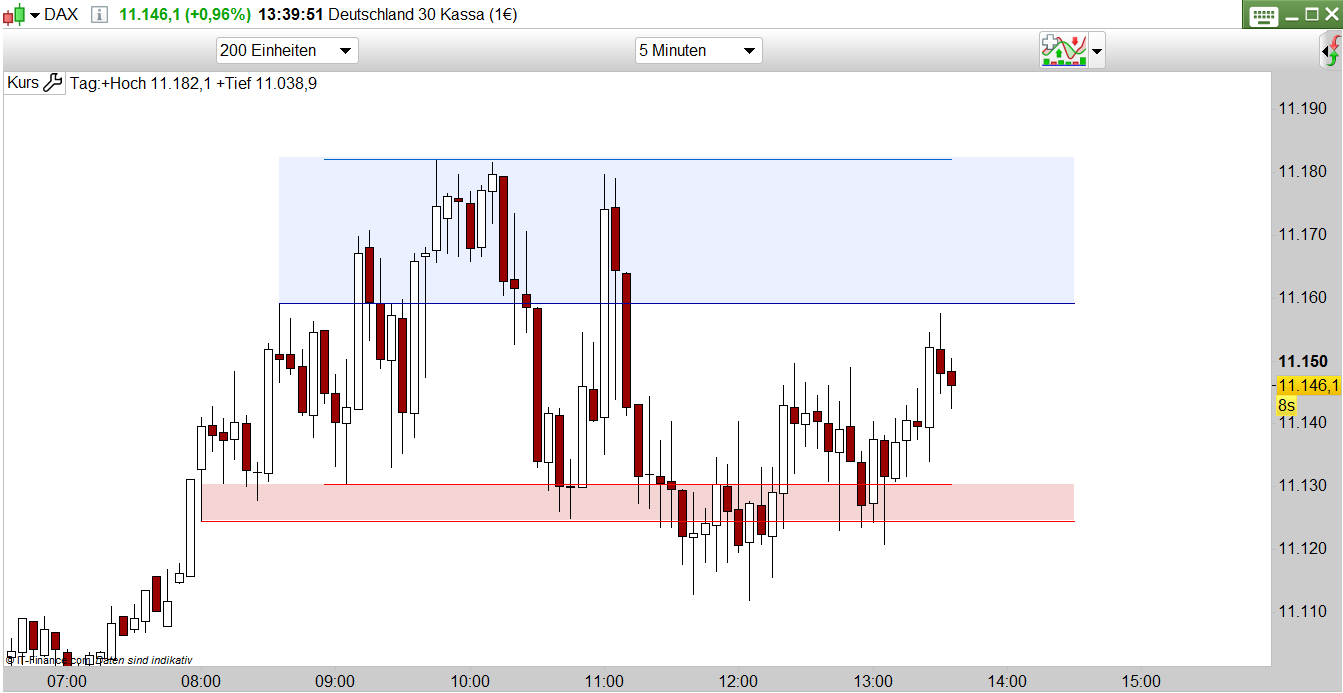 I do trade Dax and I would like to have two “First hours” in my chart. First hour of the Future market (8.00 – 9.00) and Dax Kassa (9.00-10.00) and (if possible) fill the upper two lines of the highs with a colour and the lower two lines with another colour – that should give me a zone of future and kassa first hour. See attached screenshot which is a mix of your script and manually drawn.