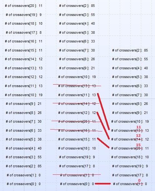 For example, in the data above, moving average periods 15, 16, and 20, all have 11 crossovers.