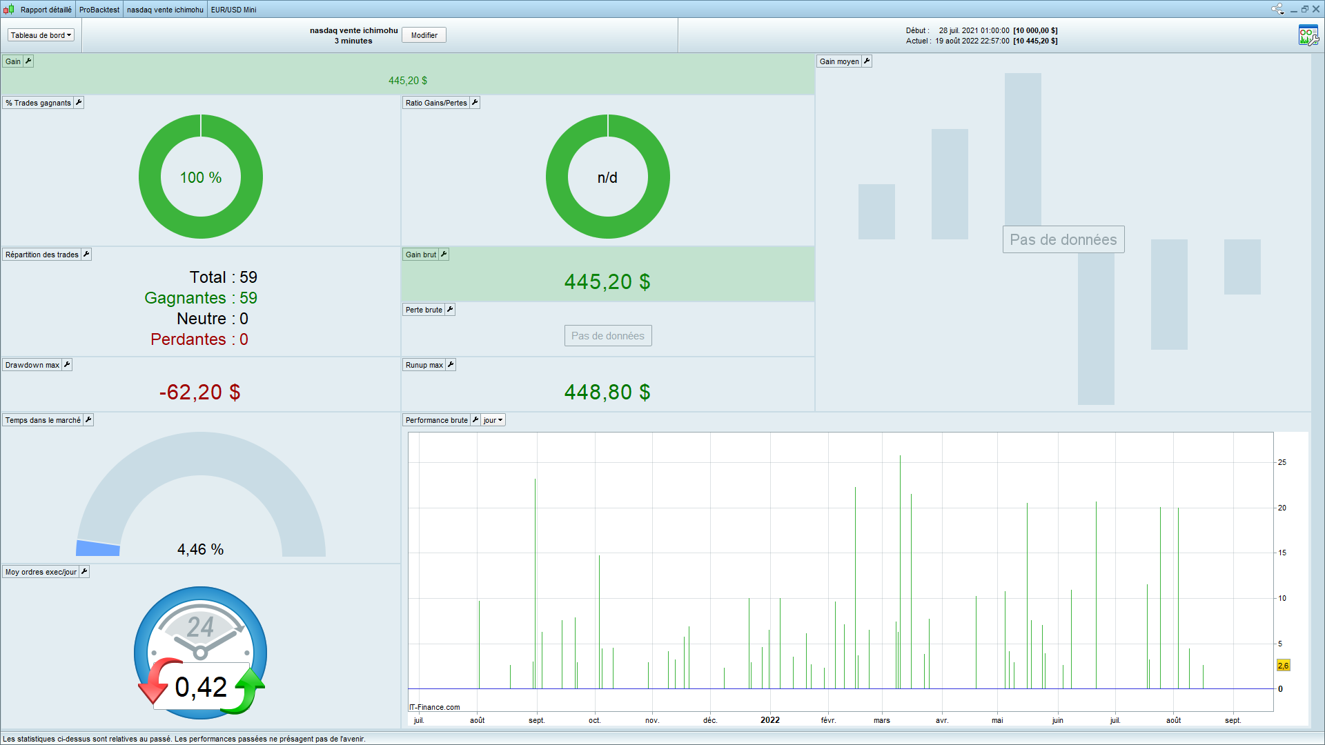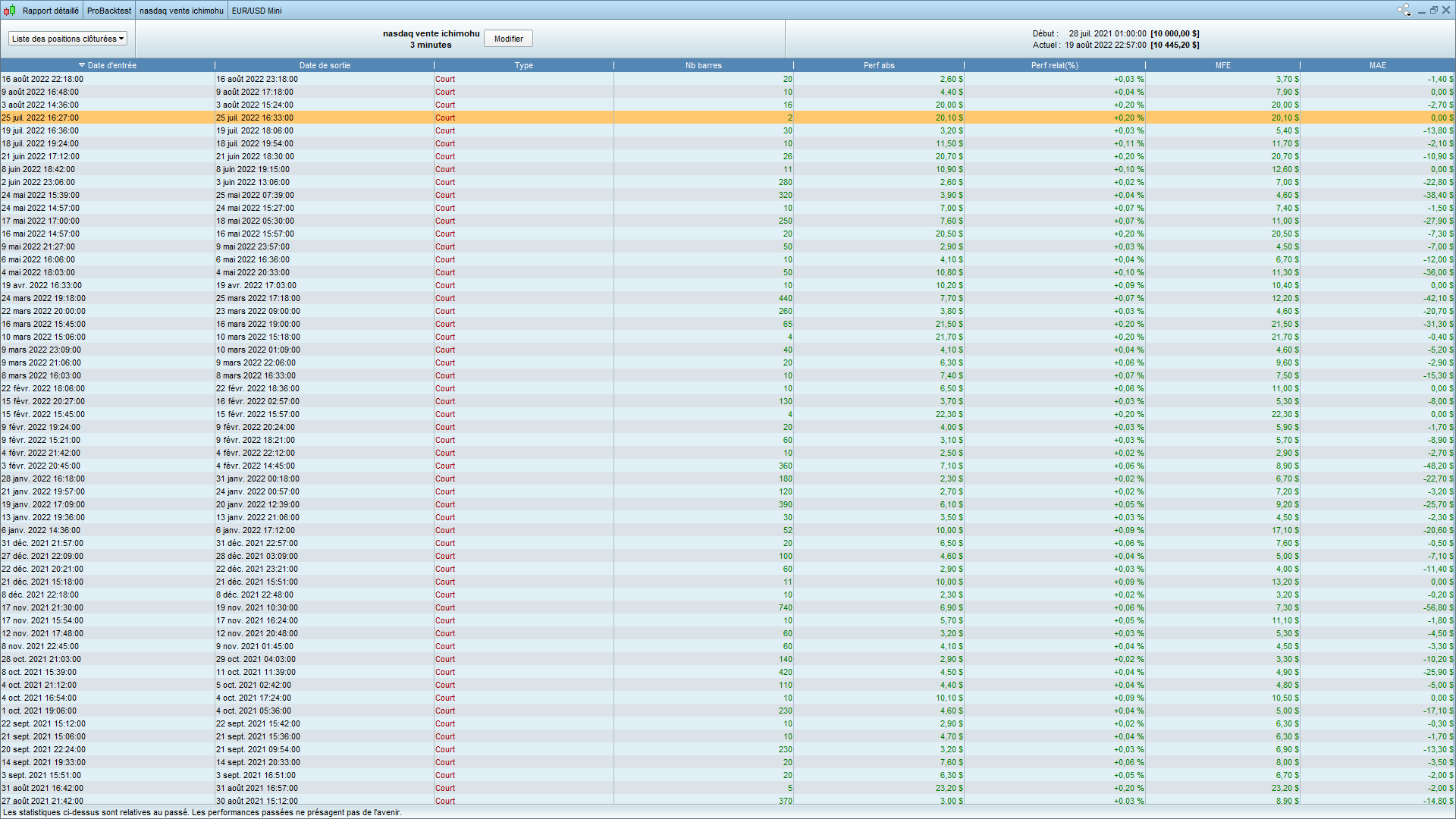 J’ai testé eur usd 2 minutes sur UT 10 secondes. Il faut en effet se concentrer sur peu de trades en début de journée. Les trades perdants arrivent pour le moment un peu plus tard dans la journée…