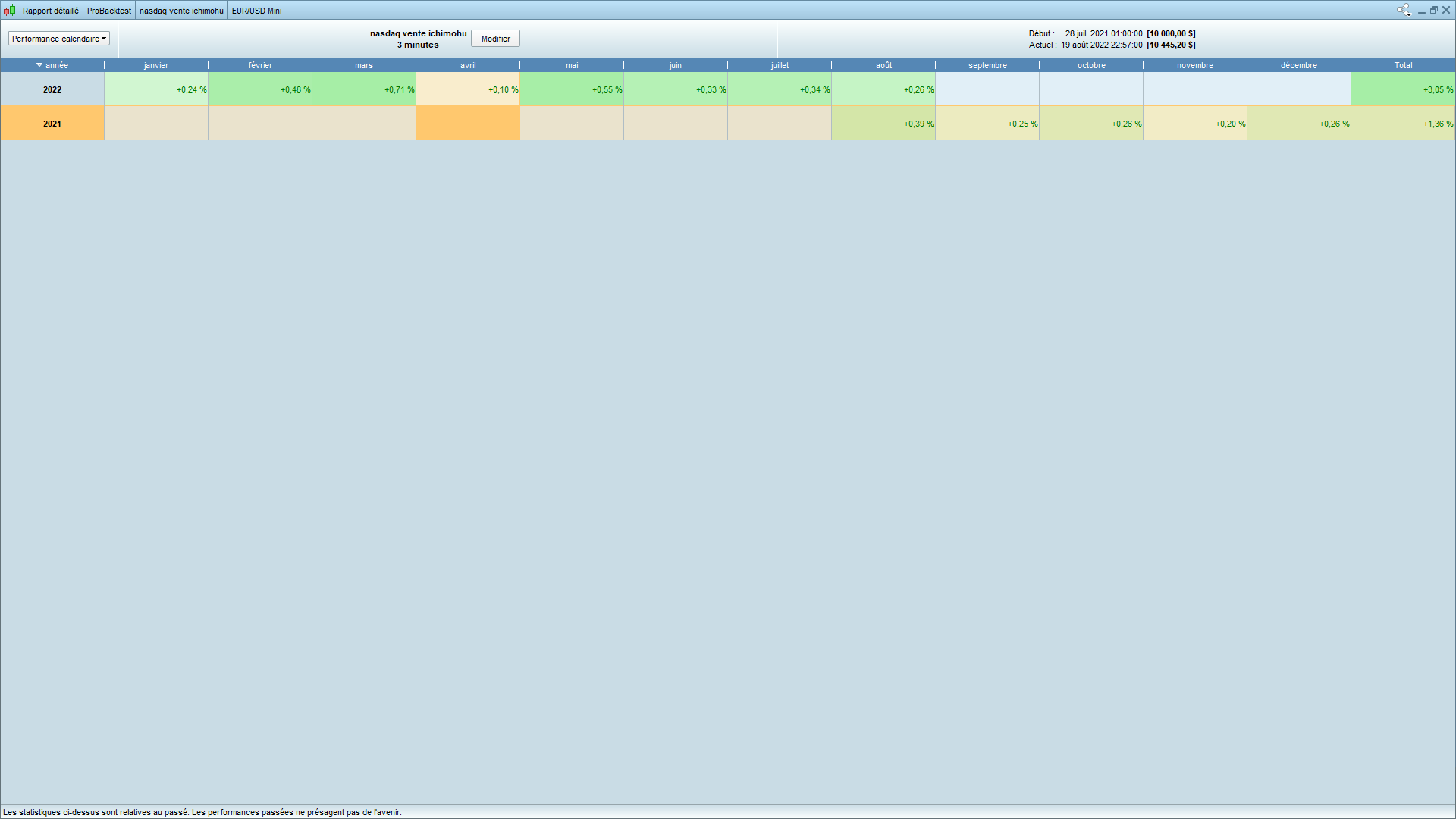 Je ne suis pas assez calé en code de mon côté pour cela. En revanche, je pourrai dans quelques temps poster les résultats du test en 10s. Aurai tu un autre système 2 minutes à partager hors eur USD ? Je ferai des essais sur des ut plus courtes…merci