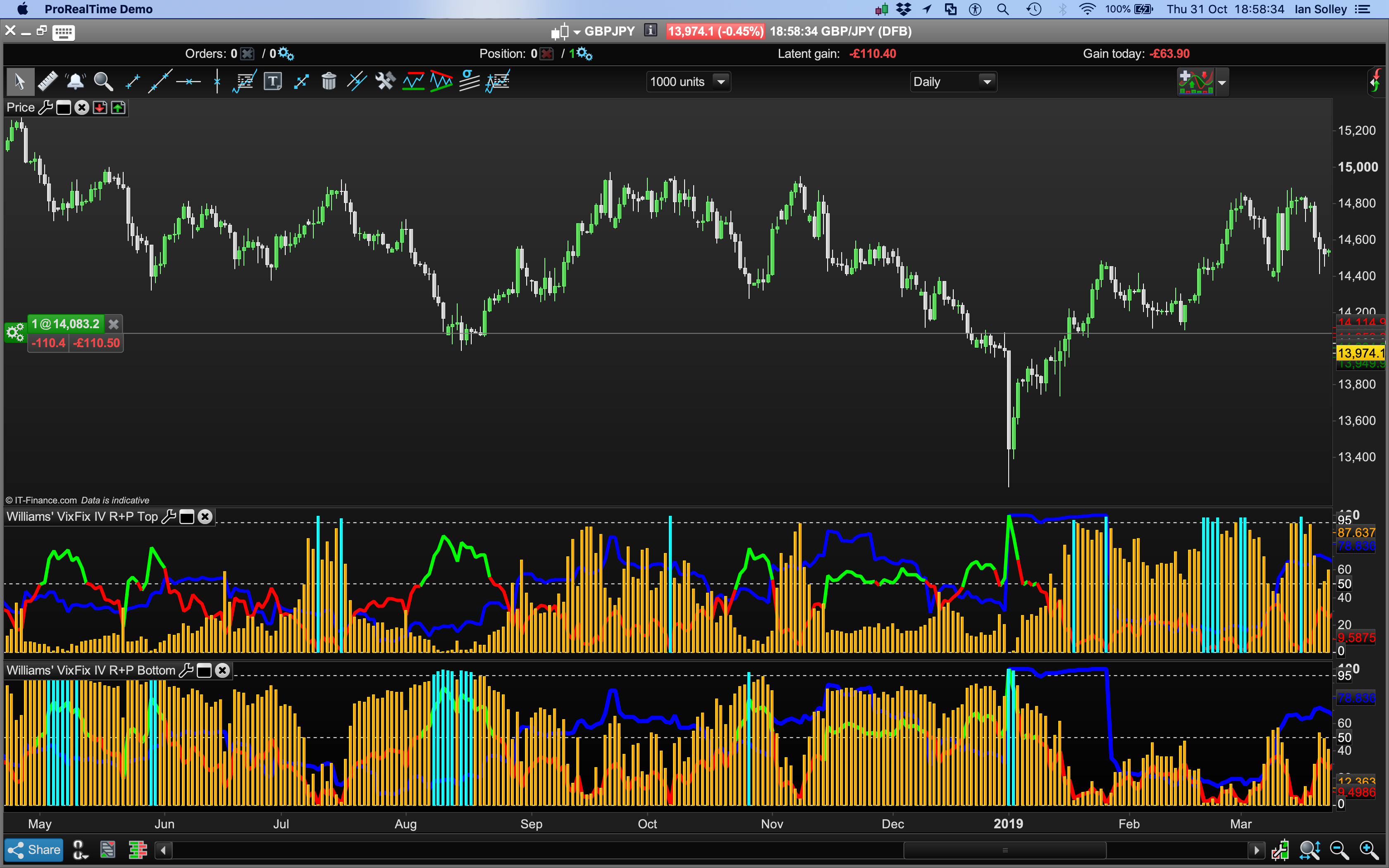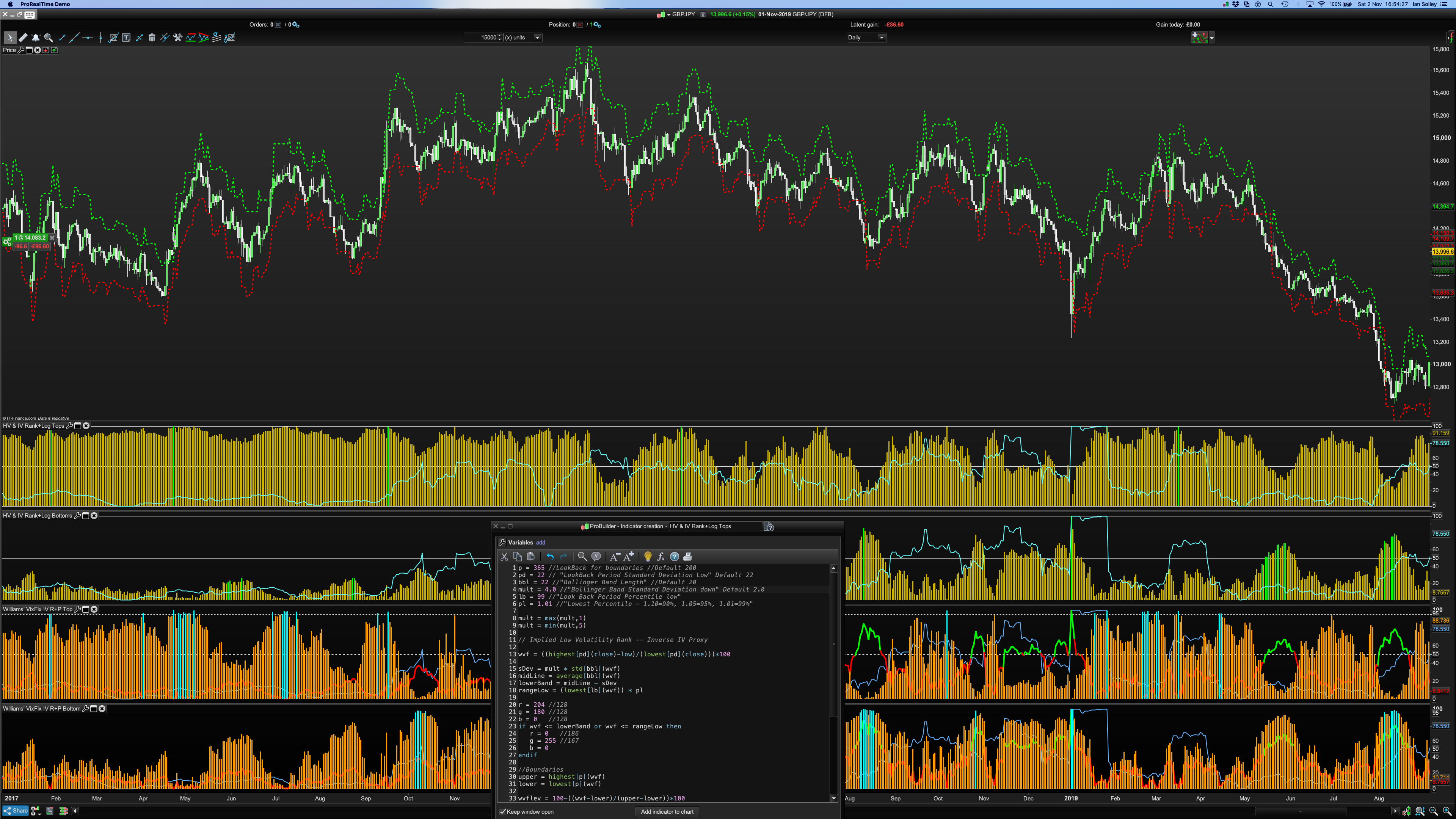 ..yet that produces a worse result for spotting market tops with green spike bars? Pls see images, the first being the correct code ( ((high-lowest[pd](close))/(lowest etc ). The top indicator (of four) is the one in question in both the attached images. Do you have any ideas please @Nicolas because these volatility indicators are great but they’re driving me nuts!? Lol.