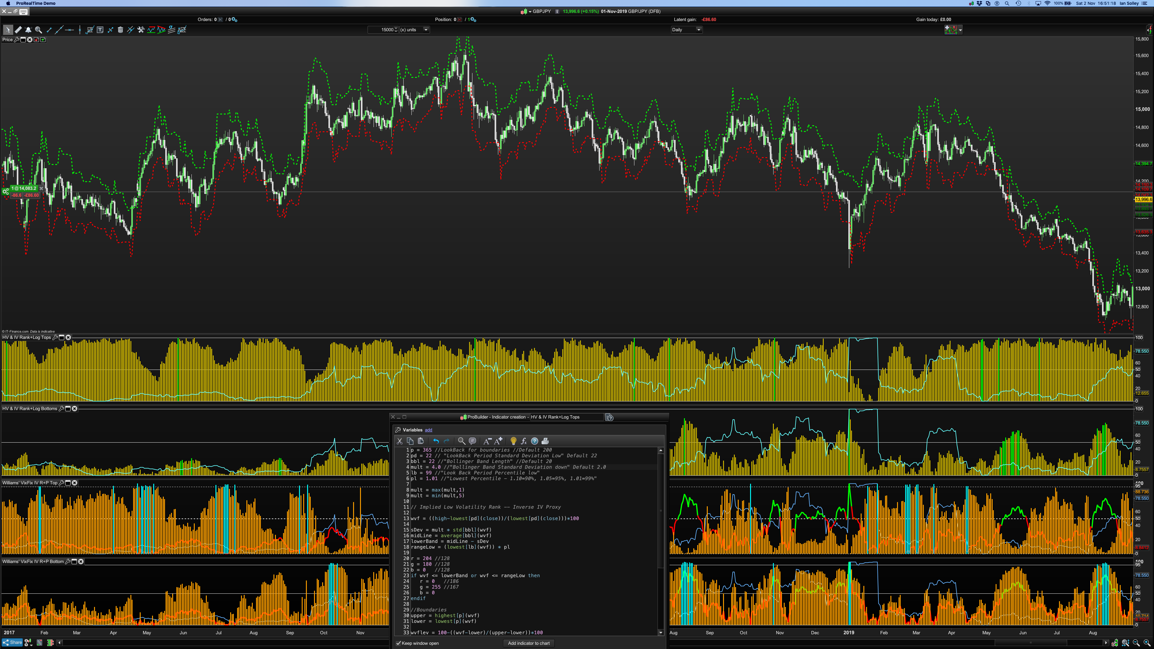 The top indicator is Vonasi’s conversion from my request here: https://www.prorealcode.com/topic/a-better-implied-volatility-rank-and-percentile-indicator/