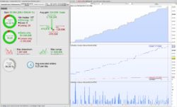 Results are displayed on chart when you run a backtest with Probacktest, they are “graphed” with 3 different curves: