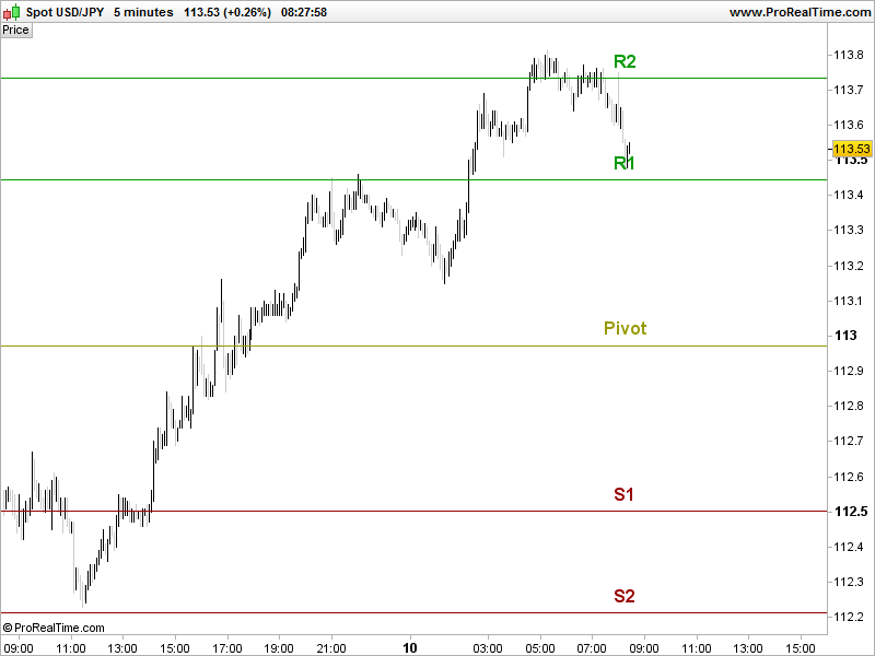 Display pivot points names above their lines on an intraday chart :