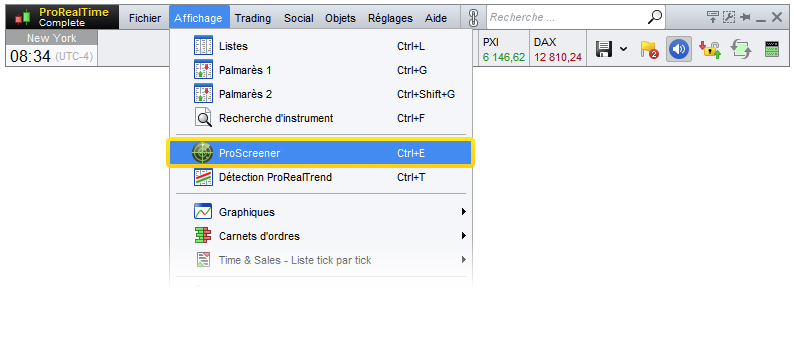You can access the ProScreener module by clicking on “View” then “ProScreener”, as shown below: