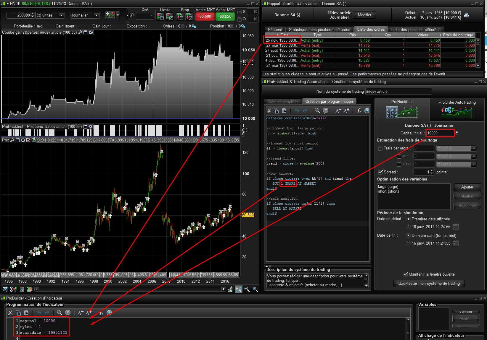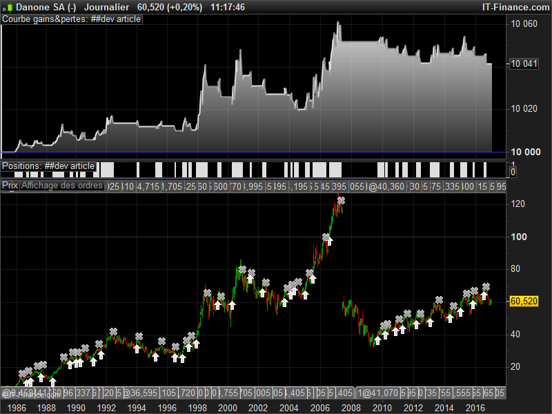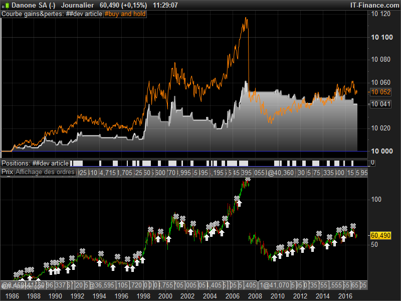 This simple strategy produce gain because trend is bullish since a while. To compare with buy and hold, we must use the exact same conditions than the strategy itself: