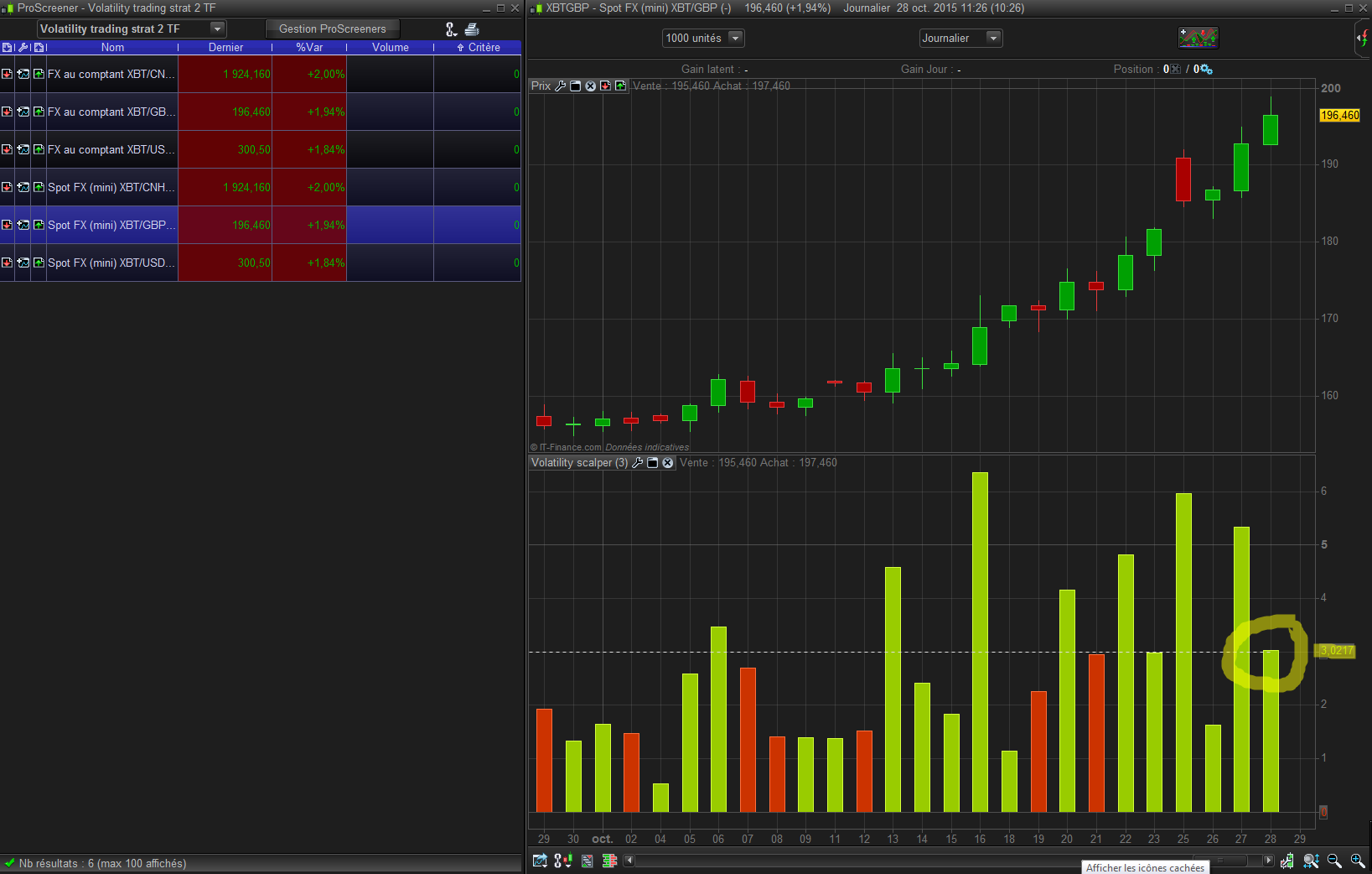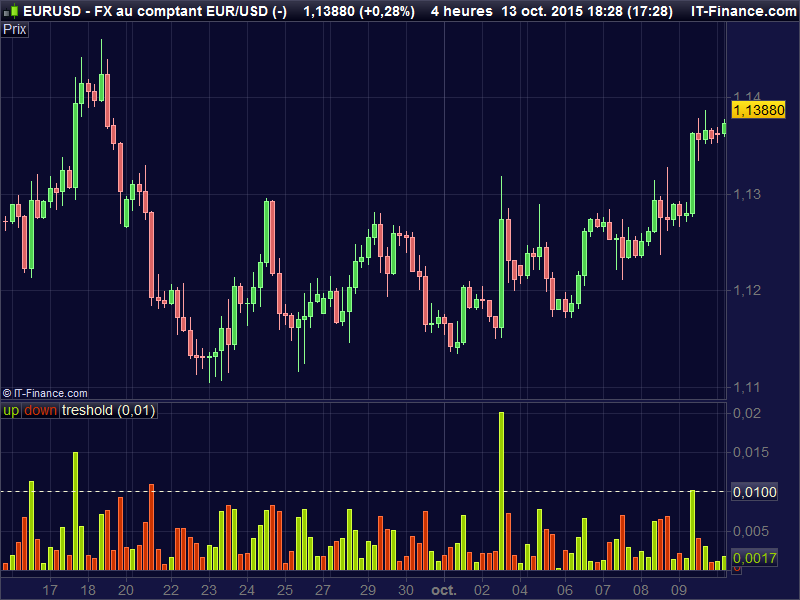 For filtering the instruments to find that we are on a daily high volatility, let’s get use of an indicator that you’ll find in the library : “Volatility scalper indicator” :