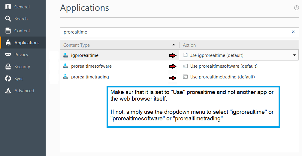 Check that Windows recognizes the ProRealTime extension type (called “MIME type”).