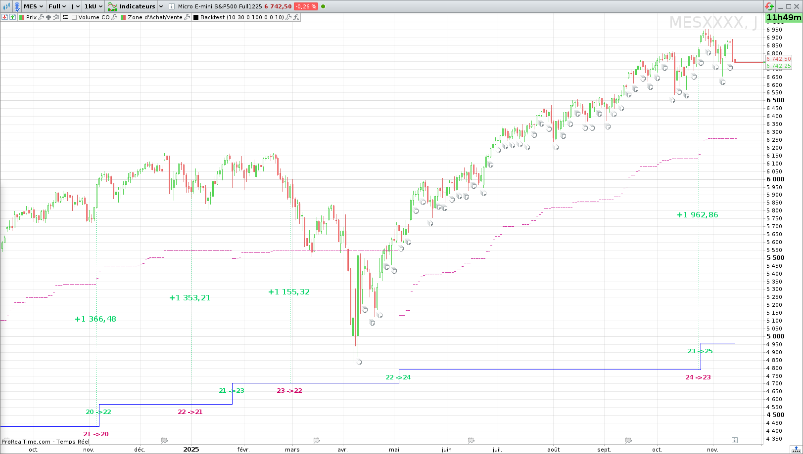 I created an indicator to allow me to simulate a backtest and display the results straigth on the graph.