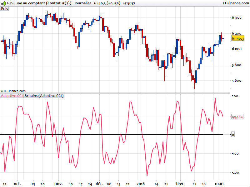 This is the Ehlers’ adaptive CCI code. The modified John Ehlers version of the CCI adapt the classical CCI period dynamically adapted to the market cycle. It tends to give more better indication as the CCI indicator itself.