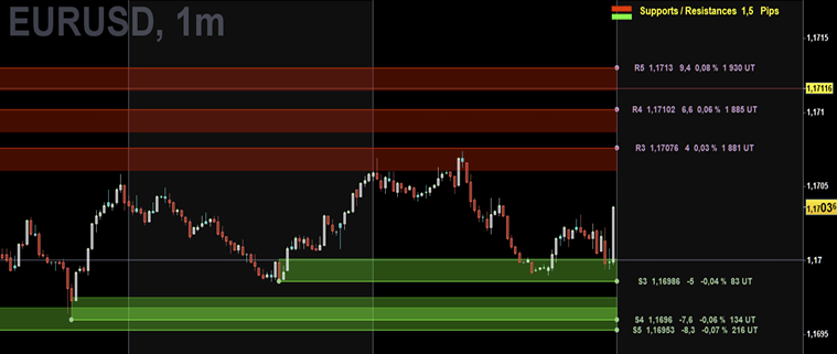 • S/R Zones (Points or Pips):  Displays a Support (or Resistance) zone of influence.