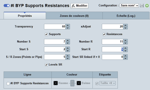 • Start SR linked if > 0: This parameter – positive – links Support/Resistance of the same index. 0 by default. For example, to identify a single channel. S3-R3.