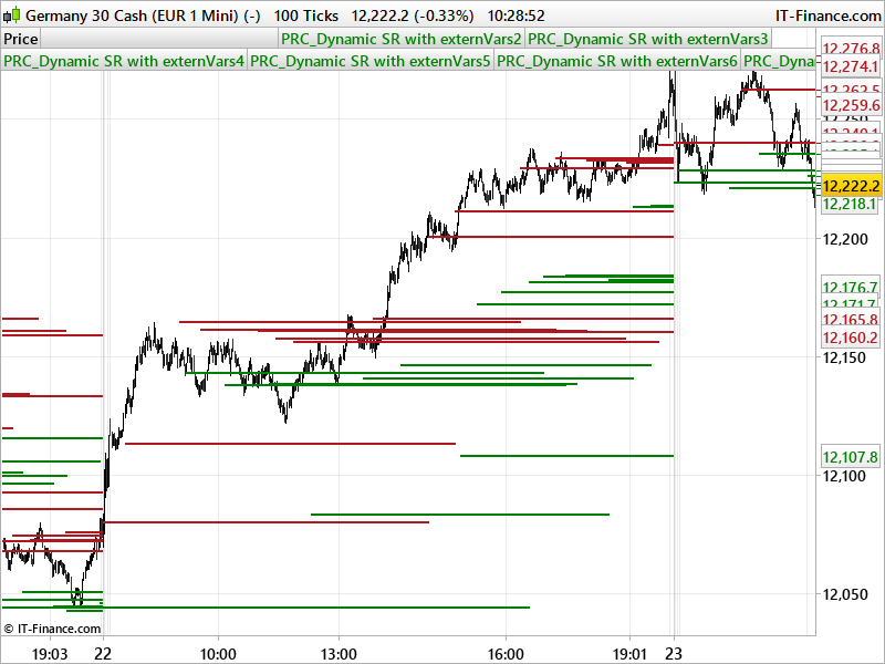 Intraday supports and resistances plotted on your chart! This indicator will fetch the whole intraday price values to find relevant support and resistance zones for you. “only” 10 support and resistances lines will be plotted.