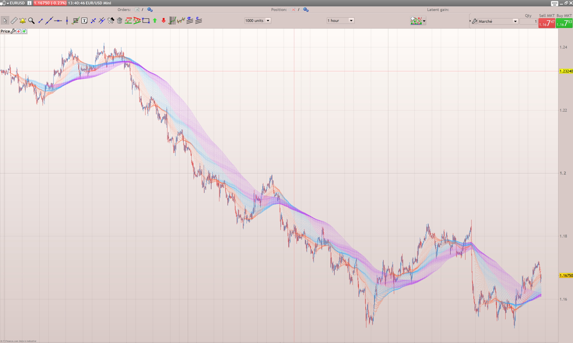 The colors of the MA are divided into 3: the shortest, the median periods and the longest periods, in order to better visualize the behavior of the market.