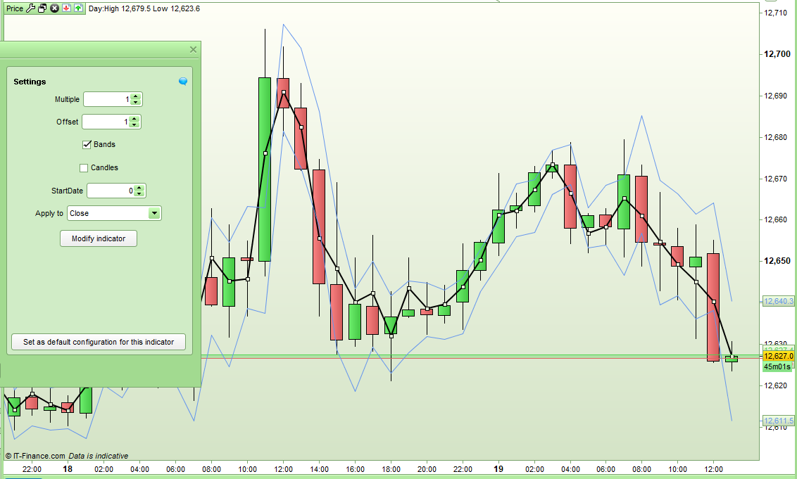 The centre of the bands/candles can be based on any custom close such as median price, close, typical price, total price etc.