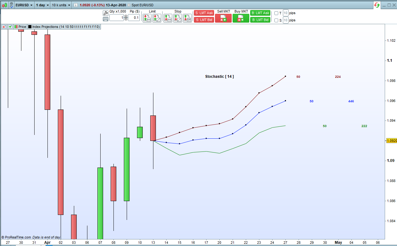 This indicator allows us to analyse four popular index indicators that return values between zero and 100 and plot lines that show the average of historical price movements following the index indicator returning any particular value.