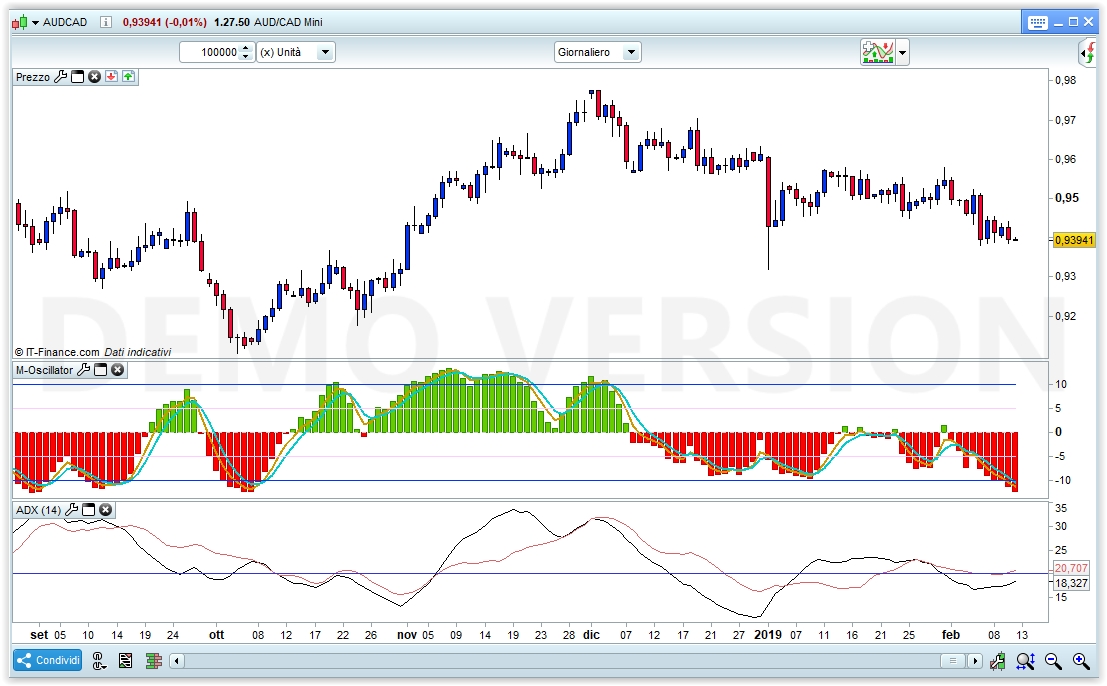 In sharp downward moves the M-Oscillator ranges from -5 to -14