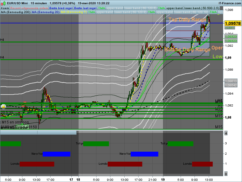 This indicator plots under the price chart, the start and end of sessions of the following different markets: Tokyo – London and US