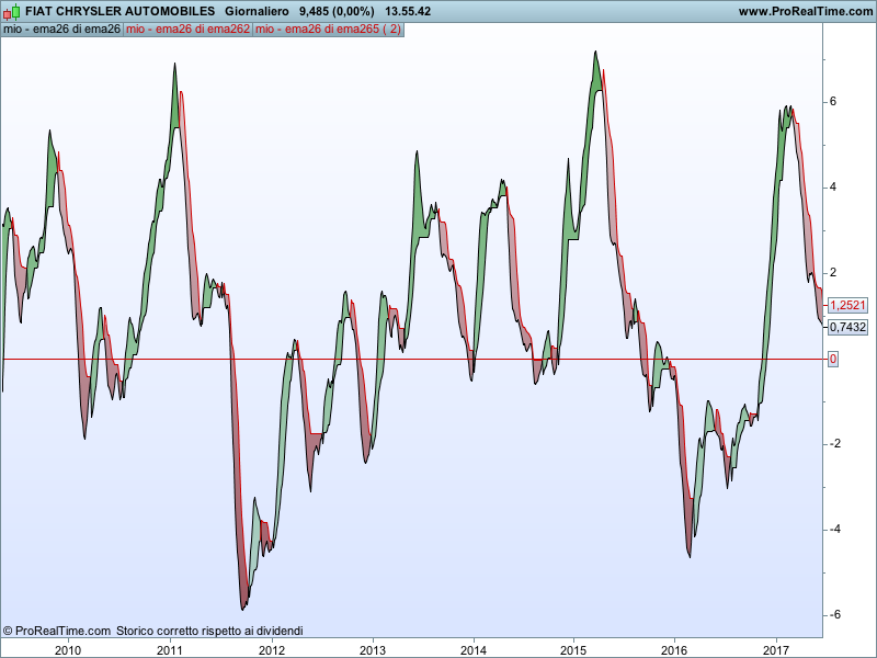 I enter long when the indicator crosses into the positive area (I normally use a number between 0.3 and 0.9) and I sell when the indicator crosses under the cut line (I use normally 1.5 to 1.9 of correction for the standard deviation)