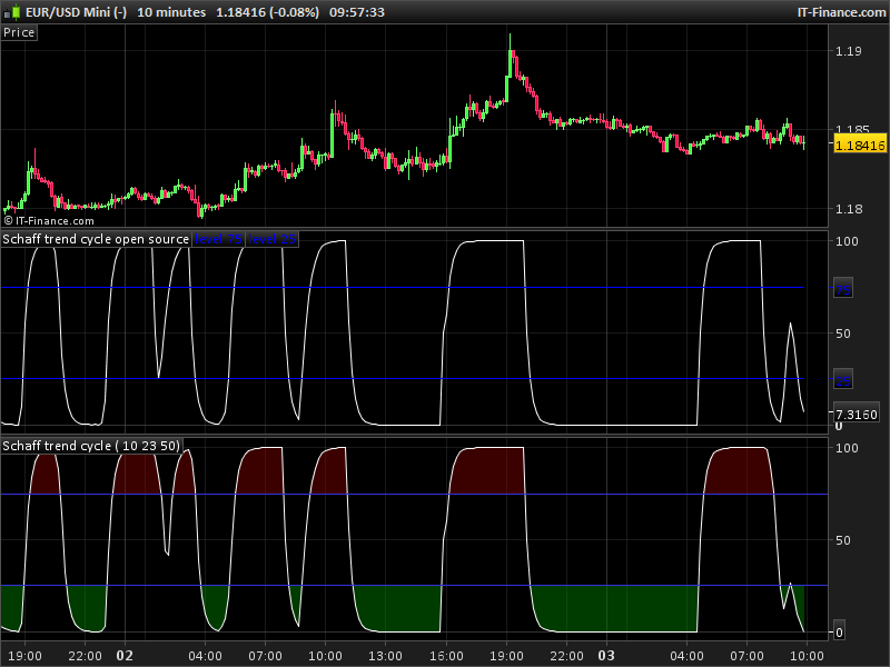 The STC indicator combines the MACD with a slow stochastic indicator and provides an early signal to recognize trends.