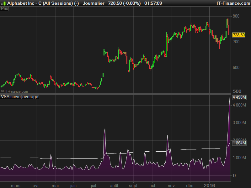 This indicator draw the difference between the high and low of the price related to the volume. Then we make an average of this oscillator over x period (200 periods by default) plus its standard deviation factorized (factor = 1.5 by default). This line act as a signal for abnormal volume exchange over the specified instrument.