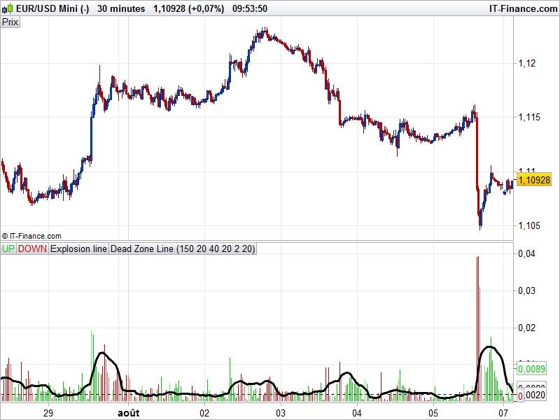 RETURN trendUP coloured by color as "UP", trendDOWN coloured by color as "DOWN", e1 as "Explosion line", deadzone*pipsize as "Dead Zone Line"
