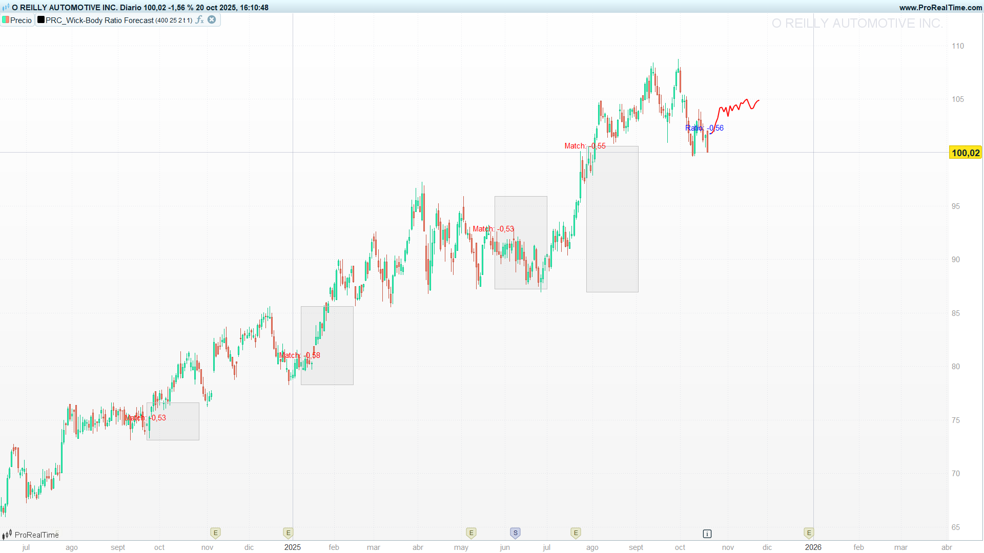 Candlestick wicks vs bodies often reveal imbalance between aggressive and passive flows. Instead of reading a single candle in isolation, this tool hunts the past for candles with similar wick/body structure, then projects the typical path that followed comparable setups—giving you a data-driven, visual “what usually happens next” for the next N bars.