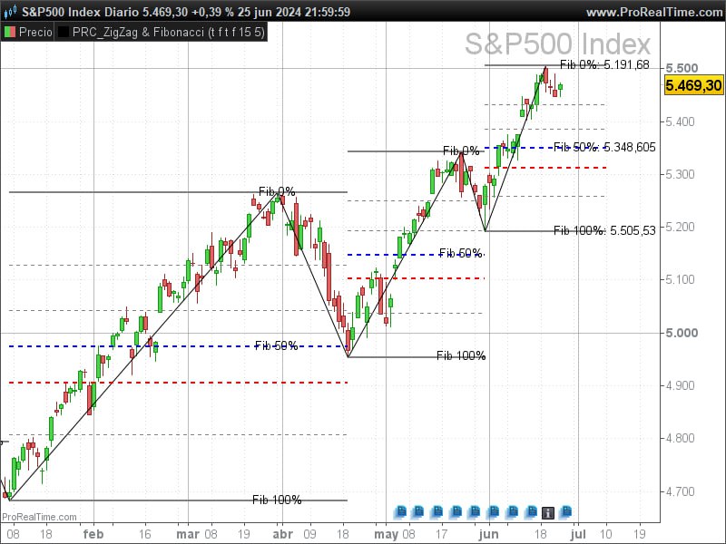 The Zigzag & Fibonacci Levels indicator is a powerful tool that combines the identification of market reversal points through the Zigzag and the projection of Fibonacci levels to anticipate possible support and resistance zones.