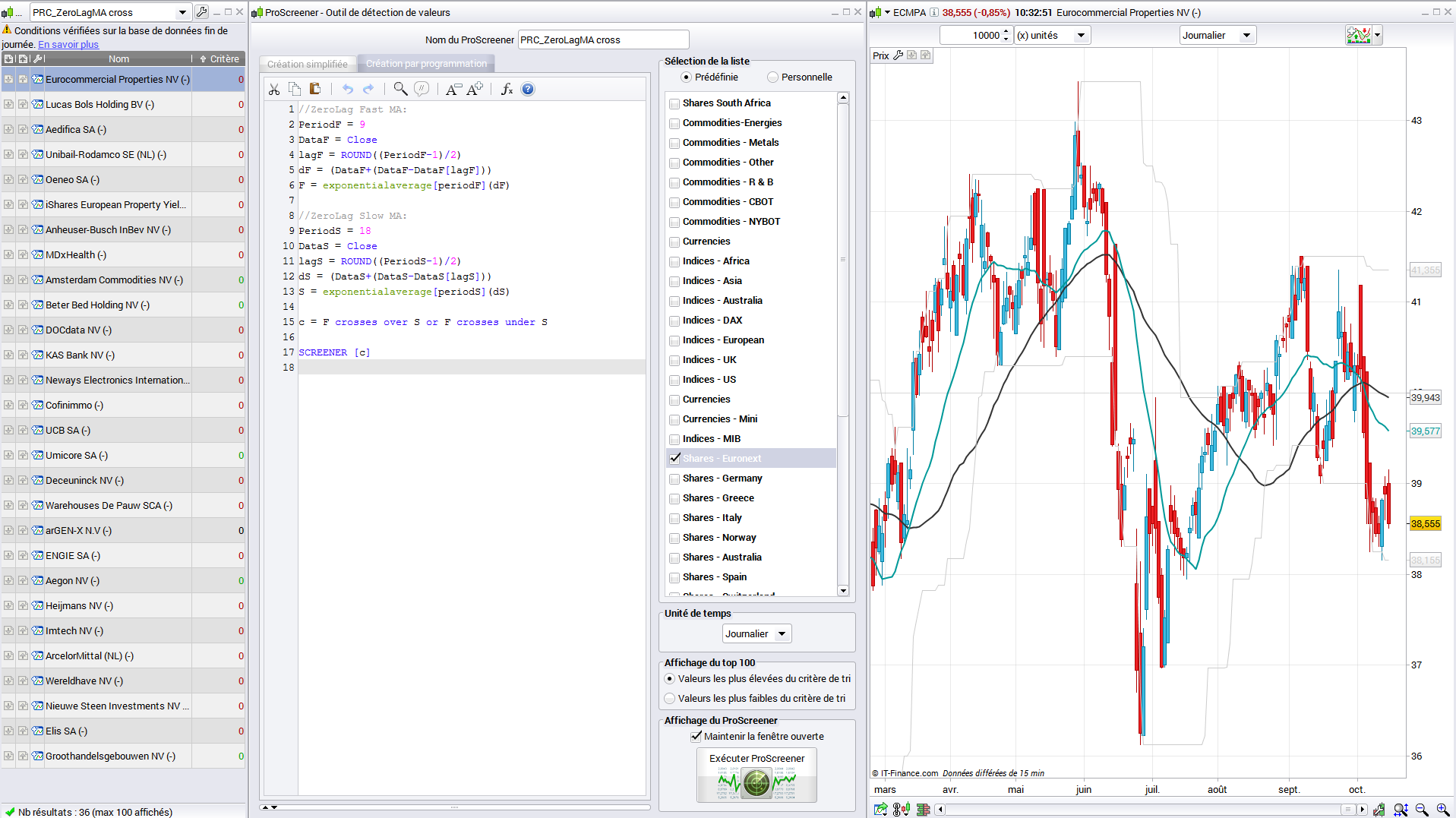 ZeroLag moving average cross screener