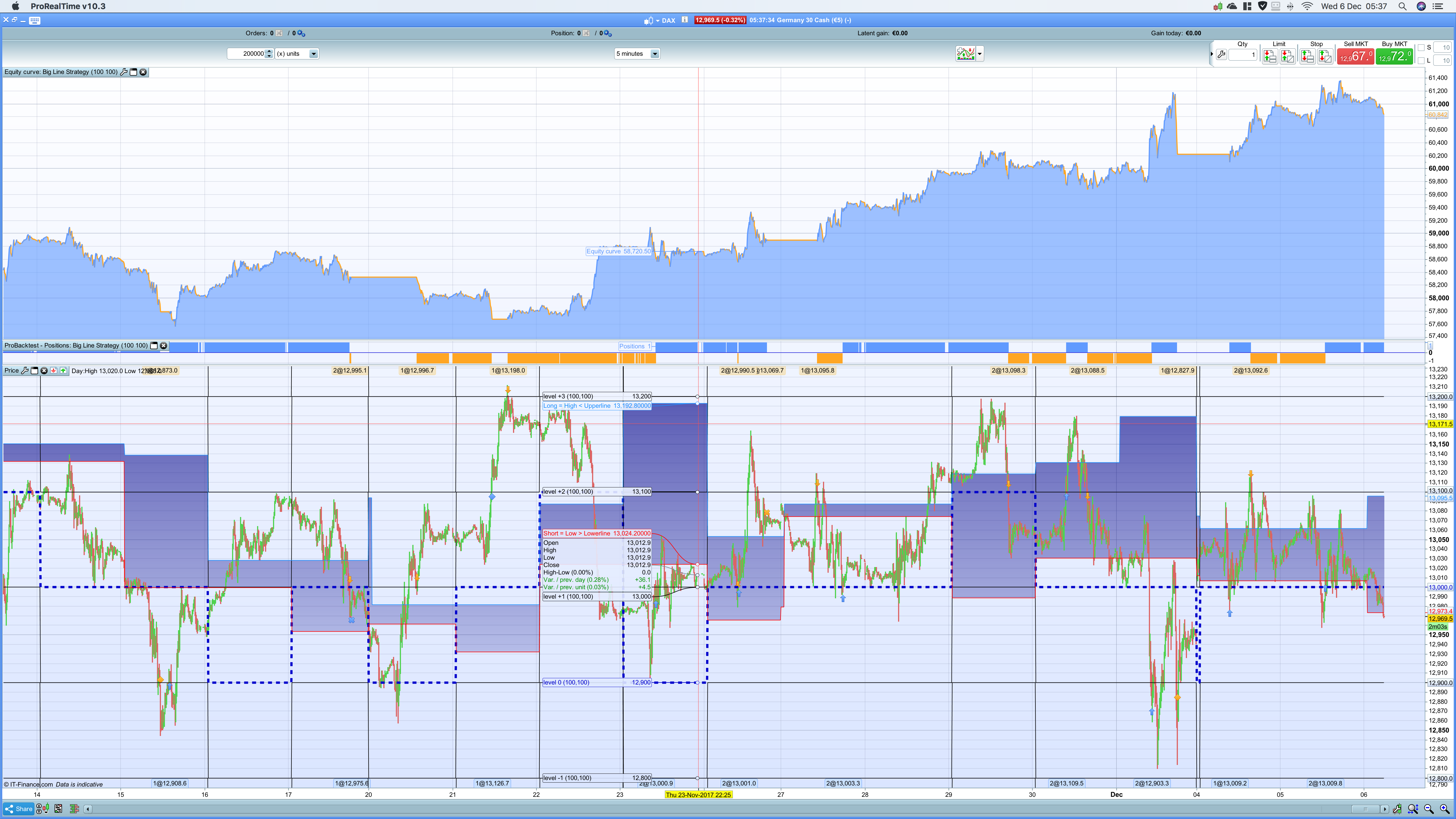 Just played around with the idea to enter a trade around a big line because it could have more potential. I focussed on the DAX.