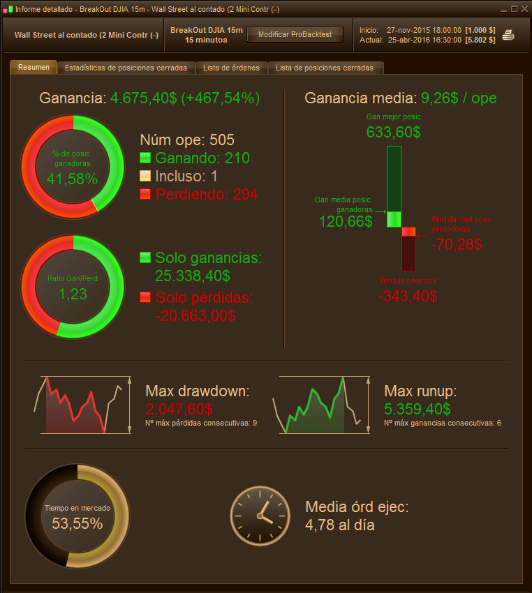 This strategy buy or sell if price breaks max or min night range with an “spread” difference (optimized by variable “s”), and then is stopped at SAR crosses.