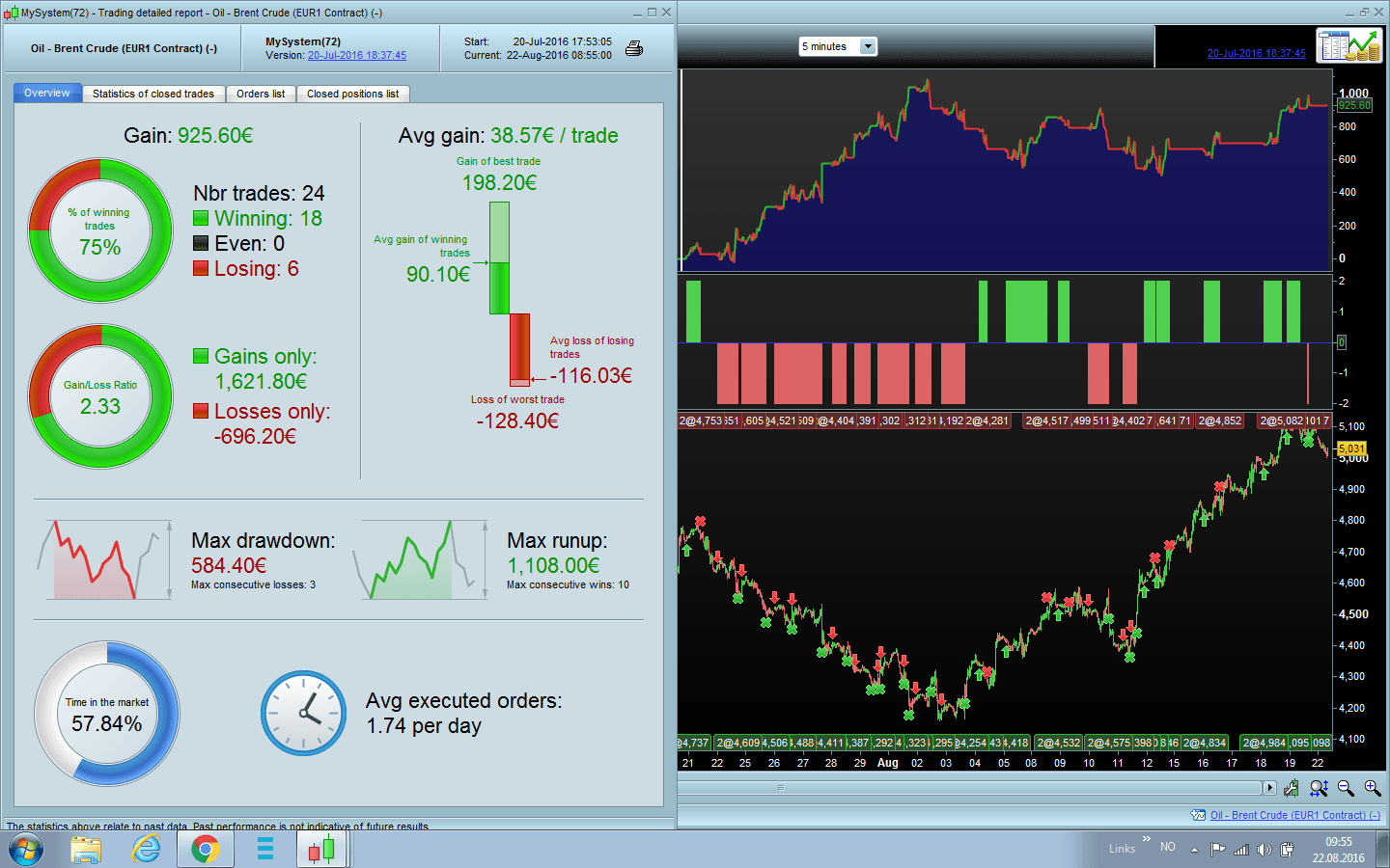 It is an automated strategy used for Brent oil CFD on 5 minute chart with good results since October 2015 as i don’t have more data to run it. Trailing stop code from Nicolas.