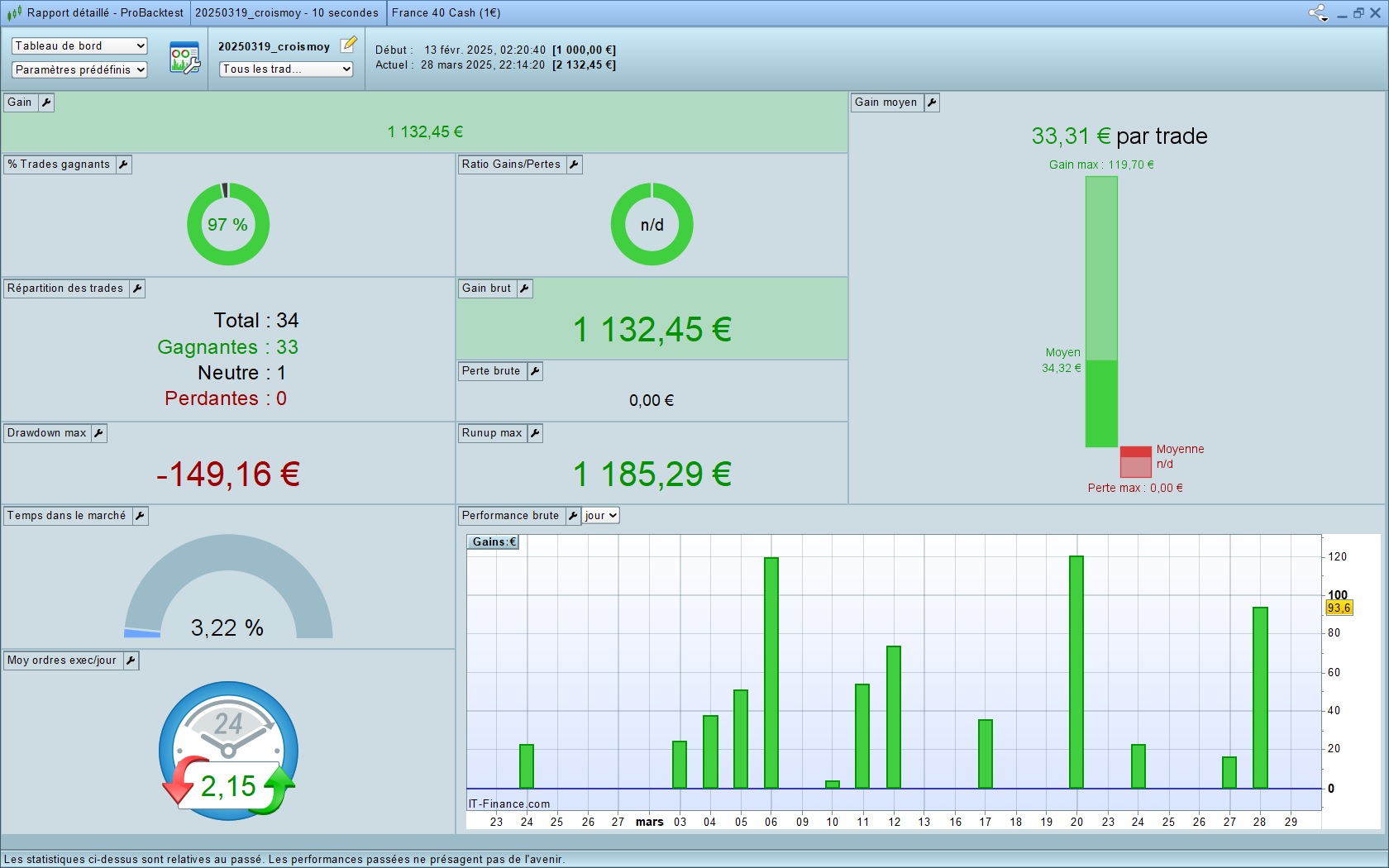 So I’m giving you an algo that is profitable to say the least: 113% gains in 1.5 months, from February 13, 2025 to March 28, 2025, from €1000 to €2132, who can beat that???