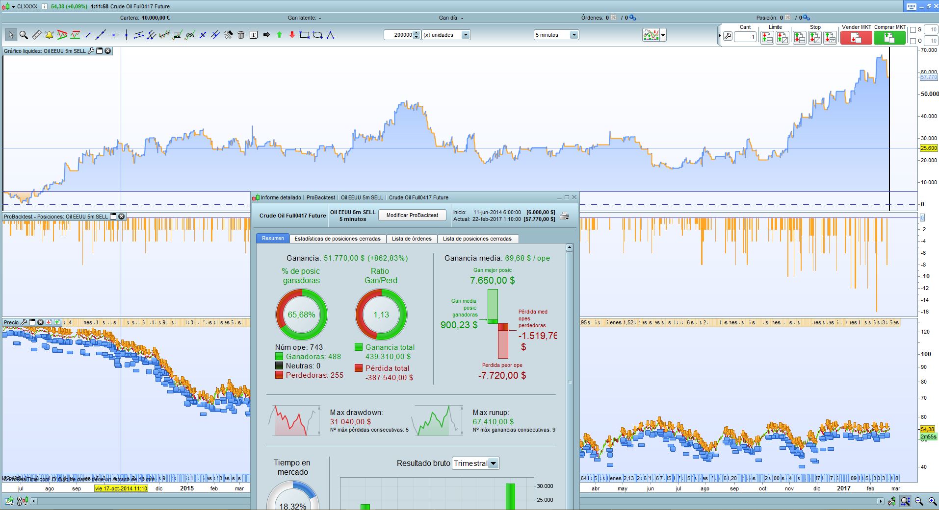 The Stop and Target profit are defined by the average range in which the price moves in 6 hours of session.