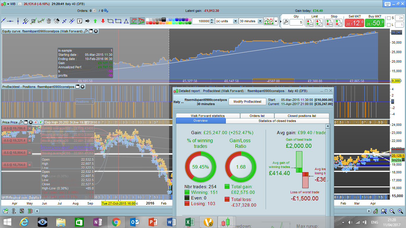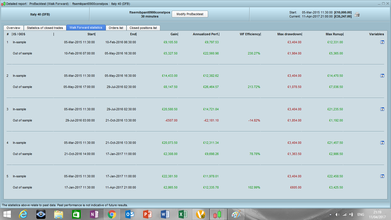 I also tried to do a walk forward analysis, with constant positions, and the results are in backtestwg.png