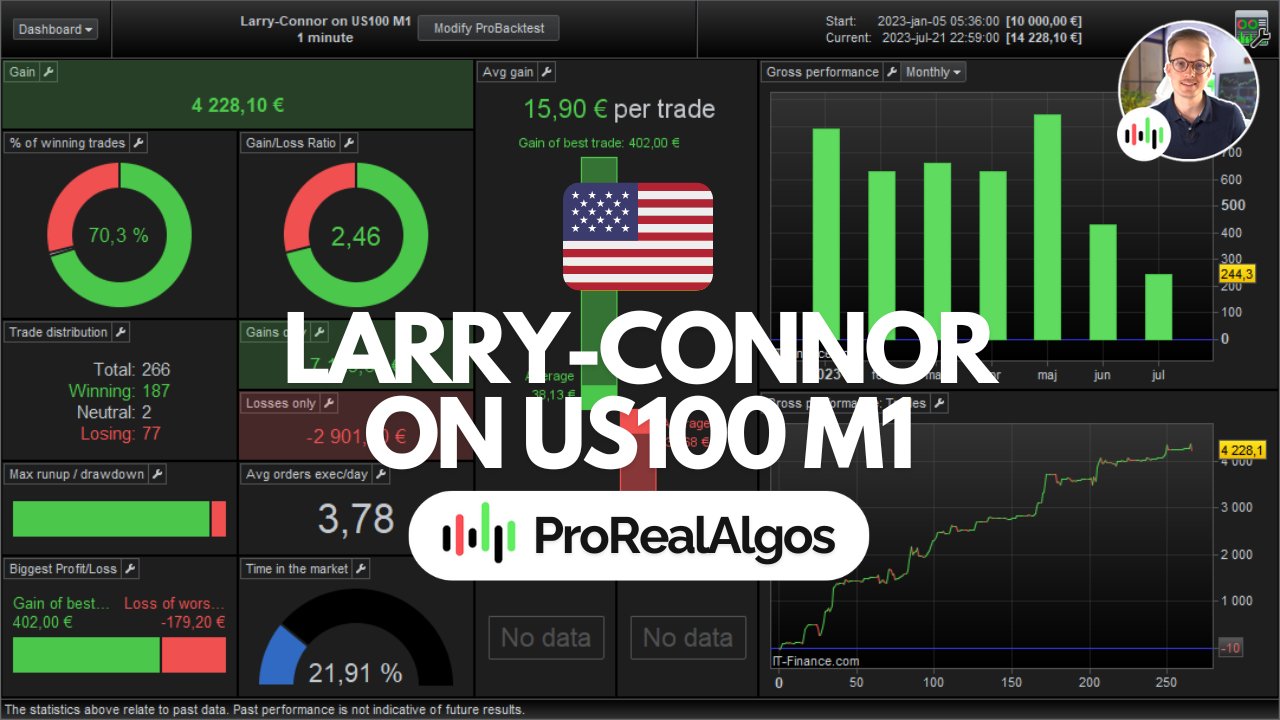I’m new of ProRealTime and I can’t replicate your performance. I ran the strategy on US Tech 100 Cash (1$) with M1 timeframe and the win/loss ratio is 1.81