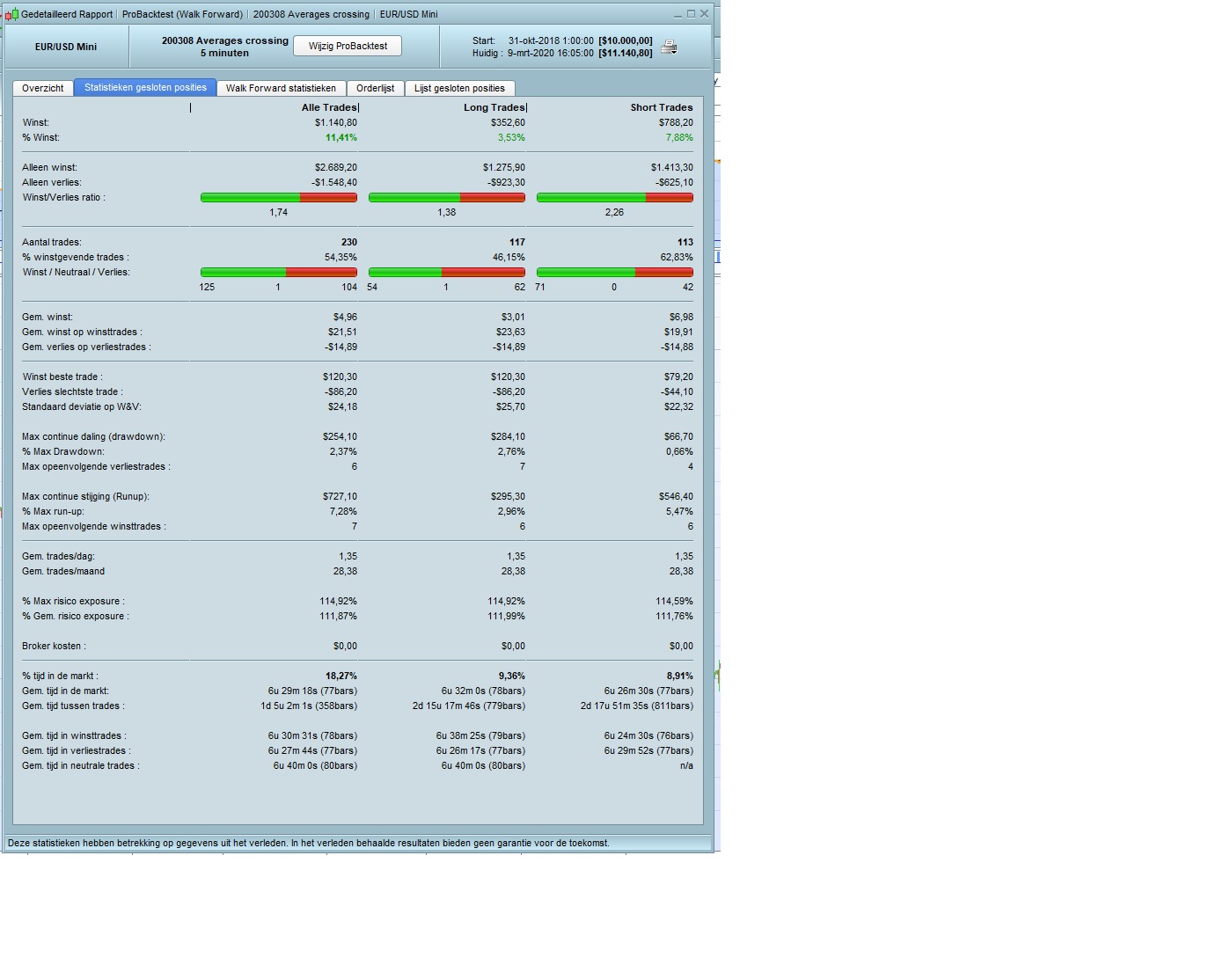 This strategy determines which of the 70 different averages is to be crossed with which of the same 70 different averages to give the best result in a certain market in a certain time frame, what in my opinion can be seen as a kind of “machine learning”