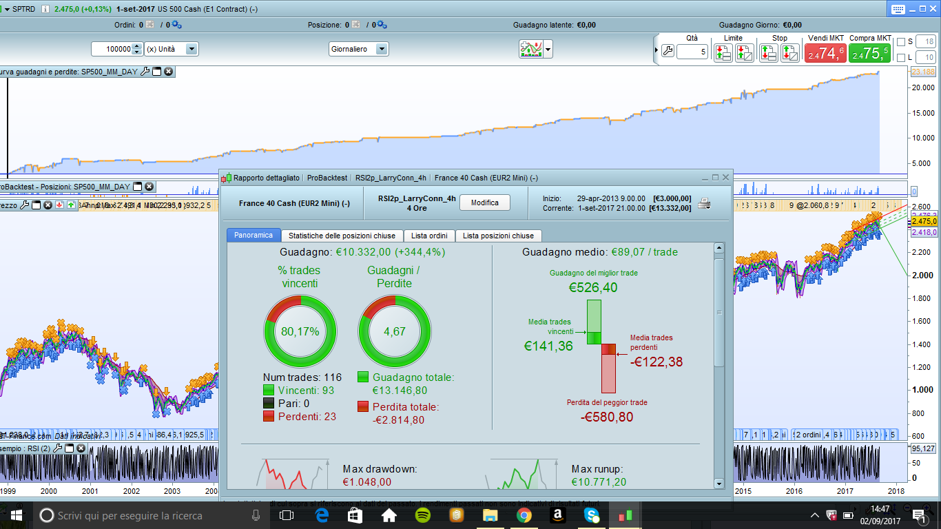 // MM125=filtro lungo periodo , MM14 media di corto periodo per le operazioni long , MM4 media di corto periodo per le operazioni short + check RSI 2