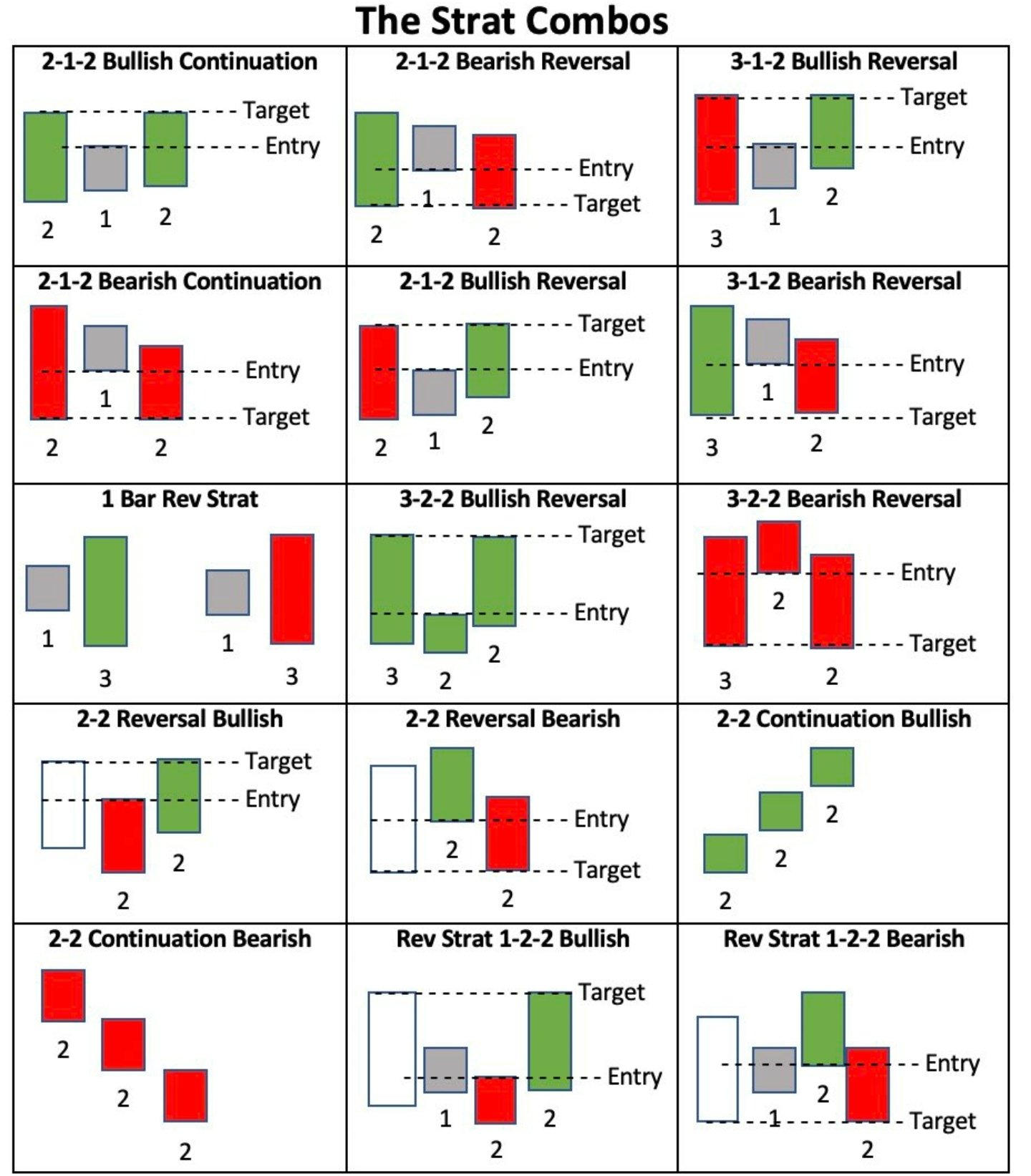 This strategy is dedicated to testing the various #TheStrat reversal (and continuation) setups as explained on the picture provided in the attached gallery which in itself is based on the 4 different Price Action scenarios discussed here: https://www.newtraderu.com/2019/02/13/what-do-we-know-to-be-true-about-price-action/