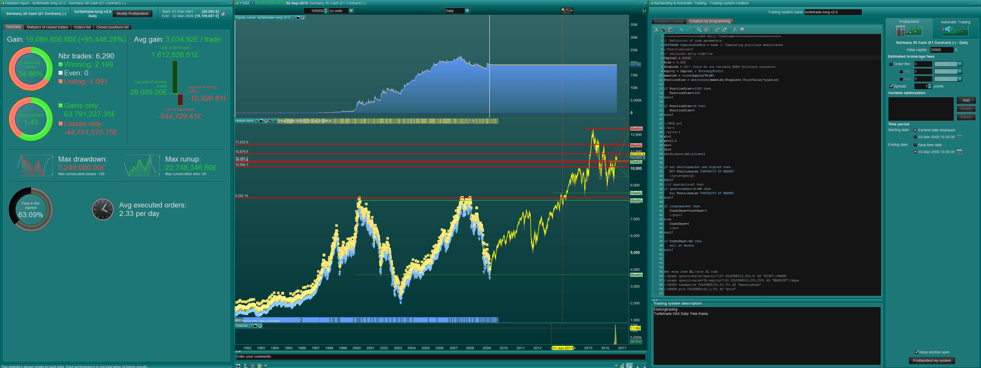 Here is a turtletrader code I have been playing around with. It not perfect as there are huge drawbacks, but it has even larger profits. It also need a decent amount of capital to begin with- a lot of patience and stomach ice.