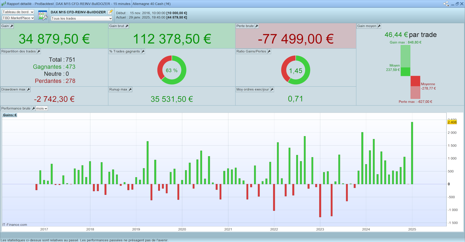 - l’algoritmo cercaĀ solo entrate in acquisto-long, per capitalizzare sulla tendenza rialzista strutturale del Dax 40