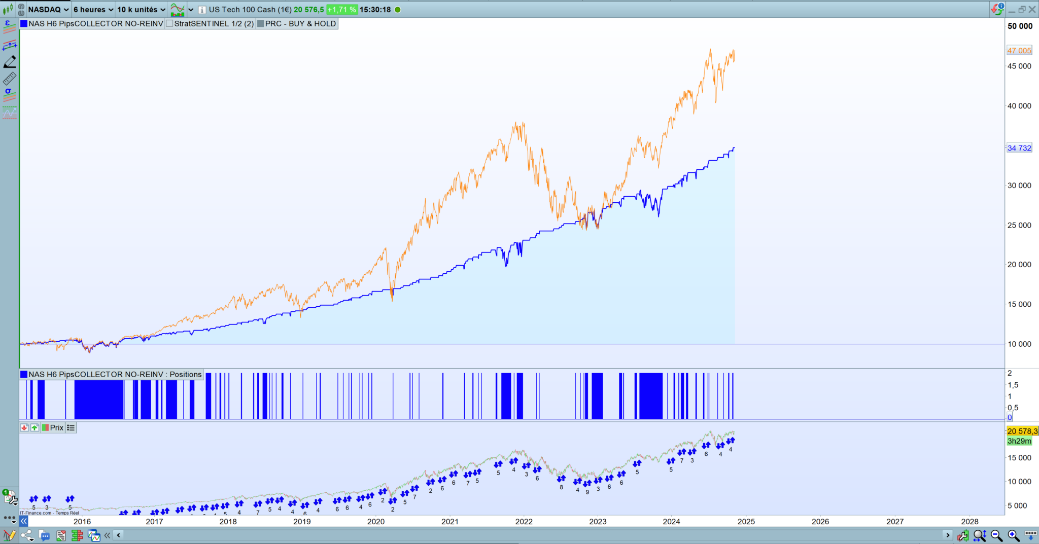 • nur nach Long-Einstiegen, um von dem strukturellen Aufwärtstrend des Nasdaq 100 zu profitieren.