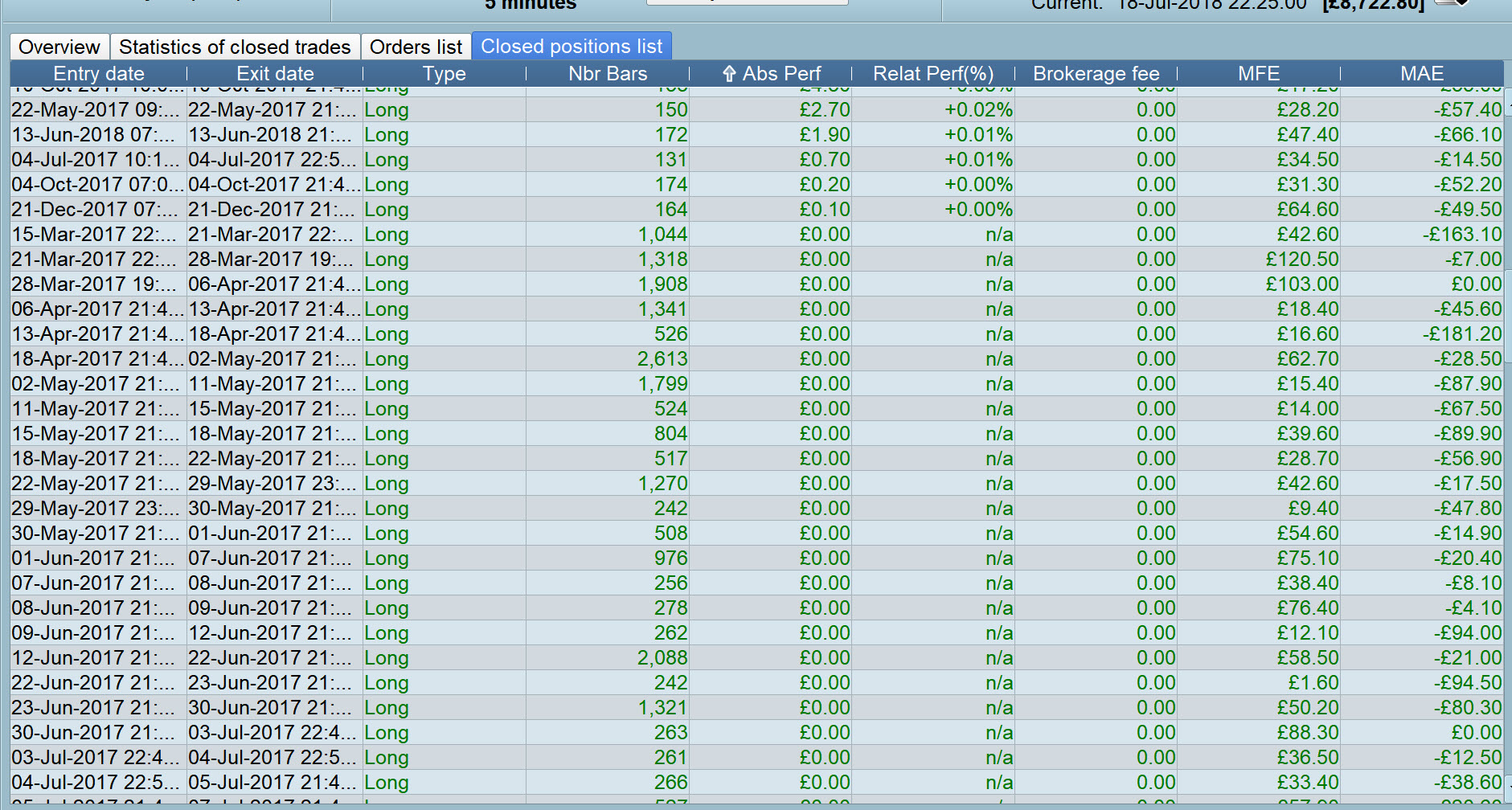 I’m not sure that it is effecting the profit/loss results as the trades win nothing and lose nothing. It is just messing up the maximum bars in a position and the average time between positions.