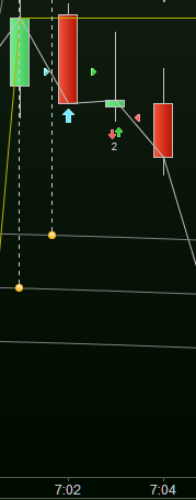 The 2nd attachment shows it is an in-bar trade (bars are 1 minute). See the down and up red and green arrows.