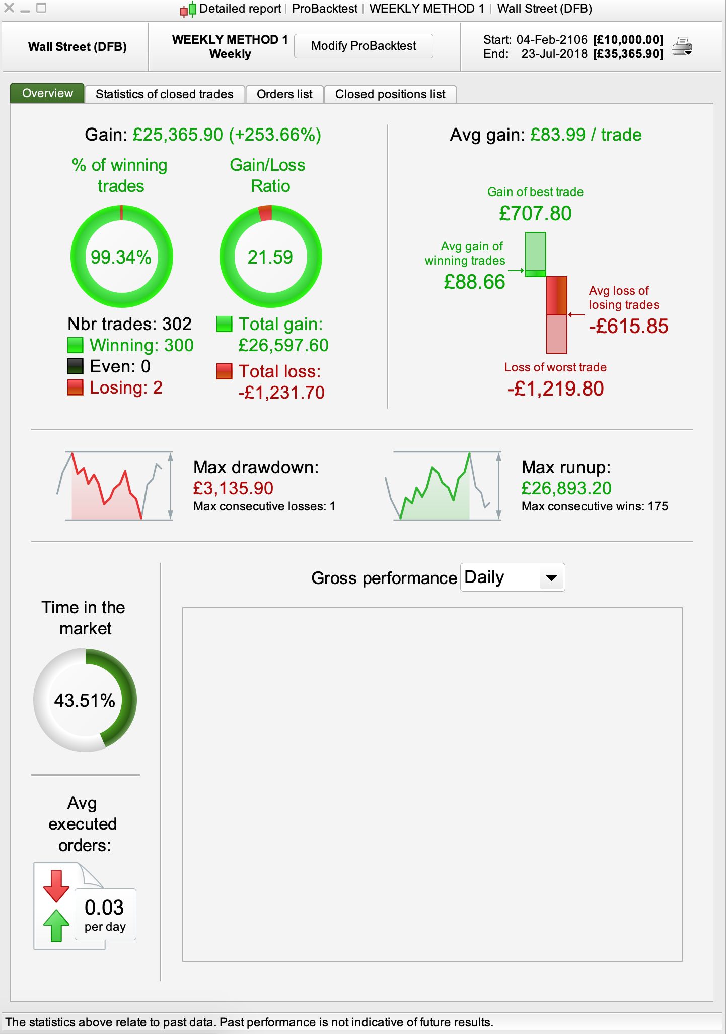 Looking into the DOW weekly, not many trades, but still massively profitable.