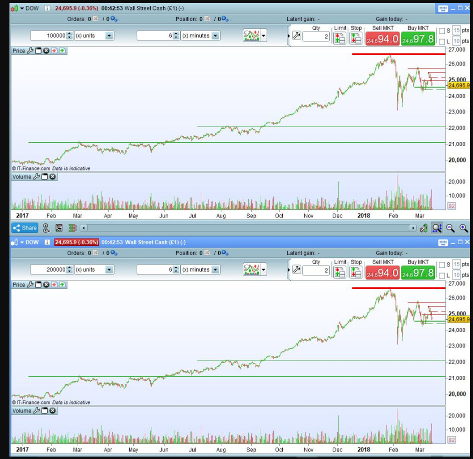 However, some charts show even more than 200 000 units as for example the Dow Jones 1 minute chart.