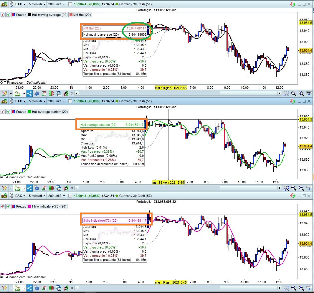 Predefined MM HULL (20 periods) uses TYPICALPRICE and matches exactly my two custom indicators: